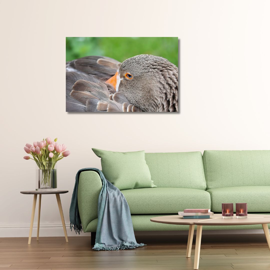 The photograph, , Norwegian Land Goose I, can be ordered as a high-quality Birch Wood Print, UV-printed directly onto sustainable birch veneer.