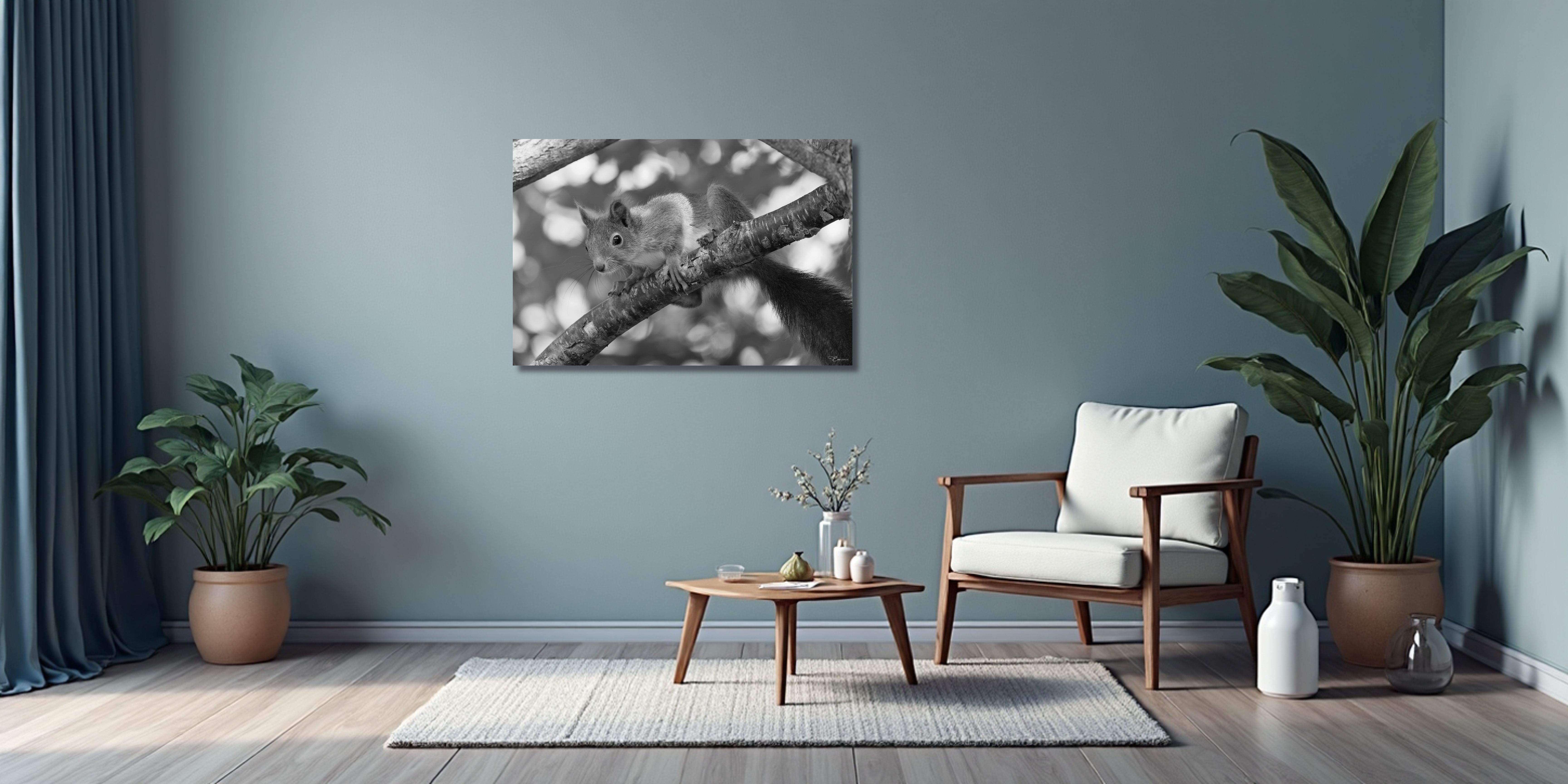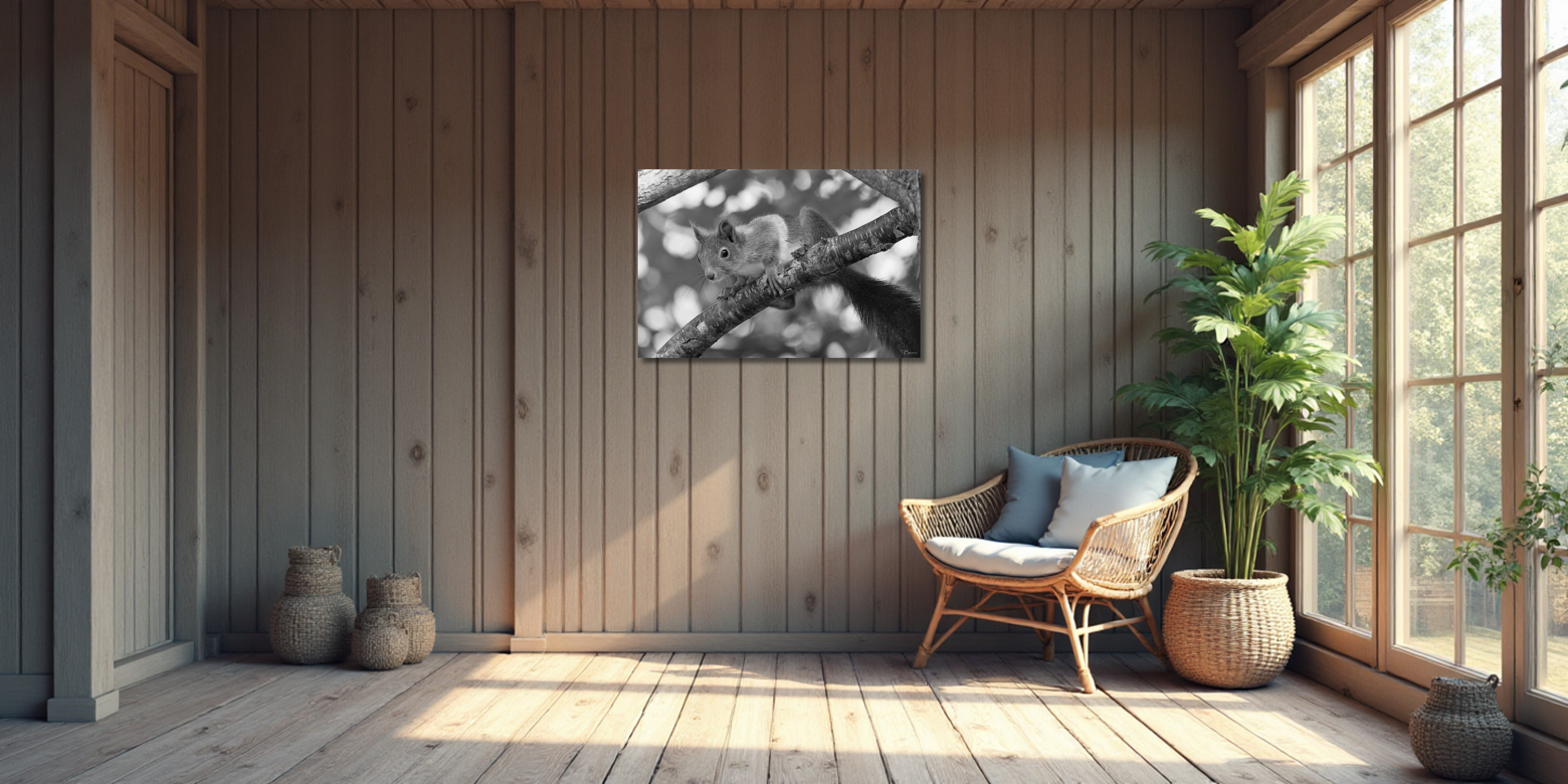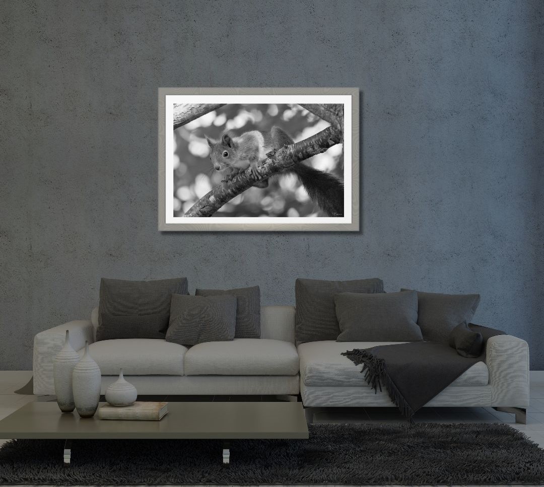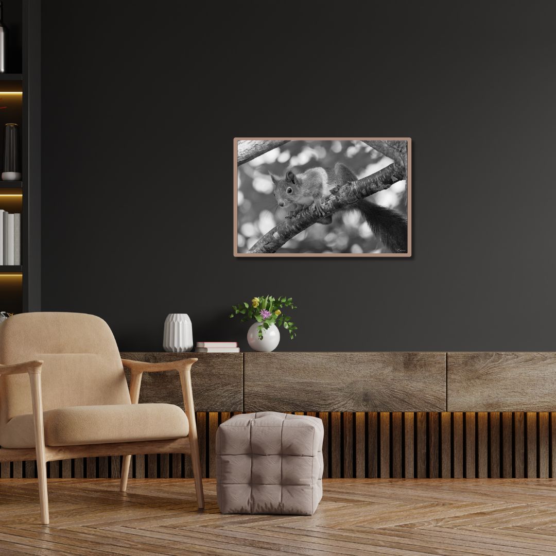 Discover the natural beauty of the Art Print Squirrel in forest II with our high-quality art prints.