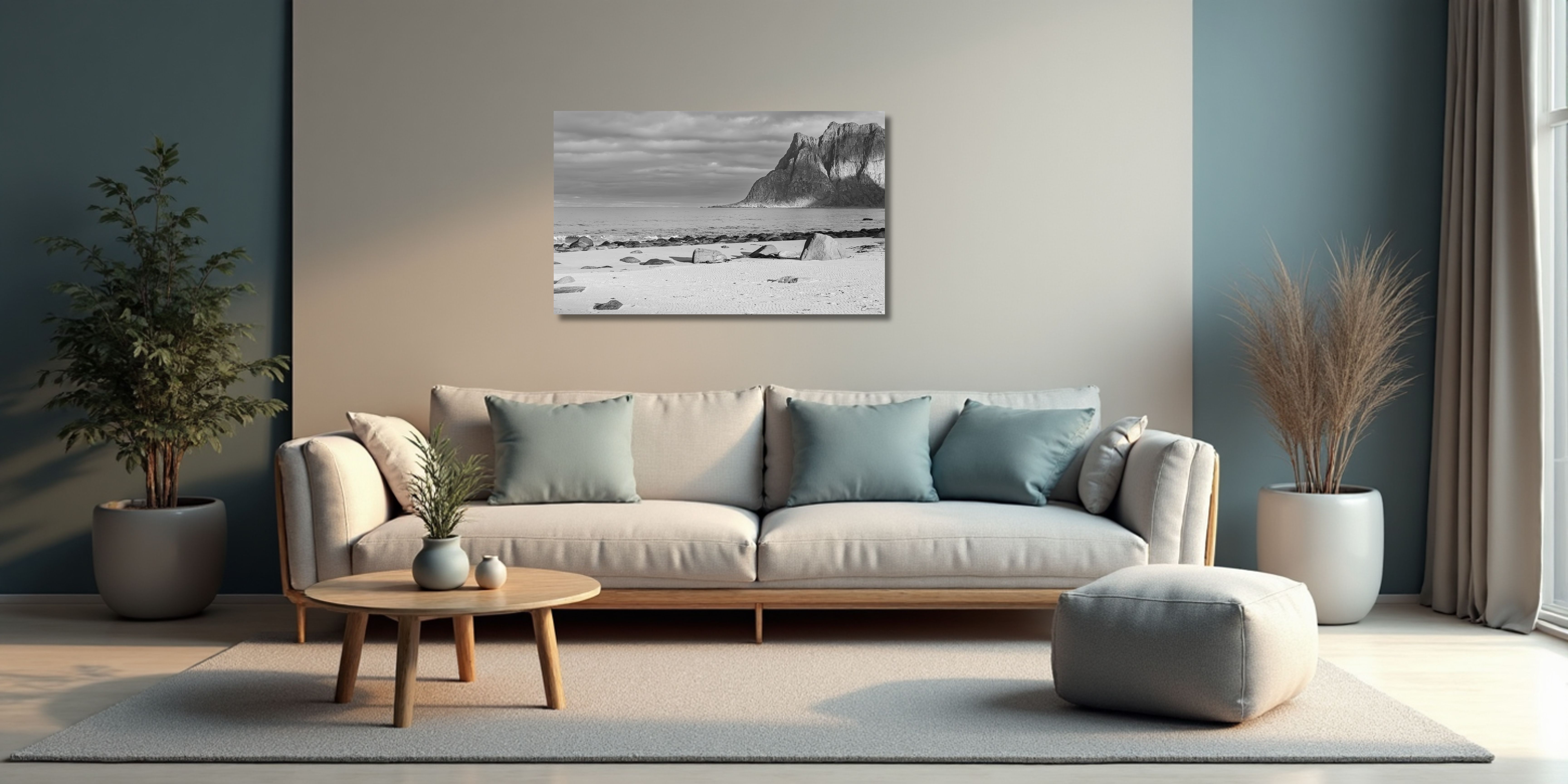 The high-quality prints of Lofoten’s landscapes are made on premium Hahnemühle paper, ensuring that every detail and color is preserved with exceptional clarity and depth.